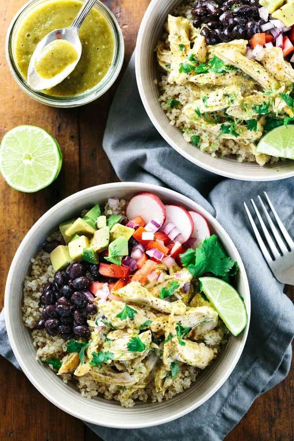 Healthy Spicy Chicken Tomatillo Quinoa Bowls Recipe from Jessica Gavin