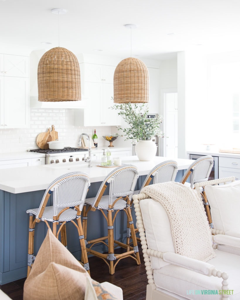 I was worried our rattan pendant lights might not transition to other seasons, but I actually love the warmth they add to the kitchen for fall!