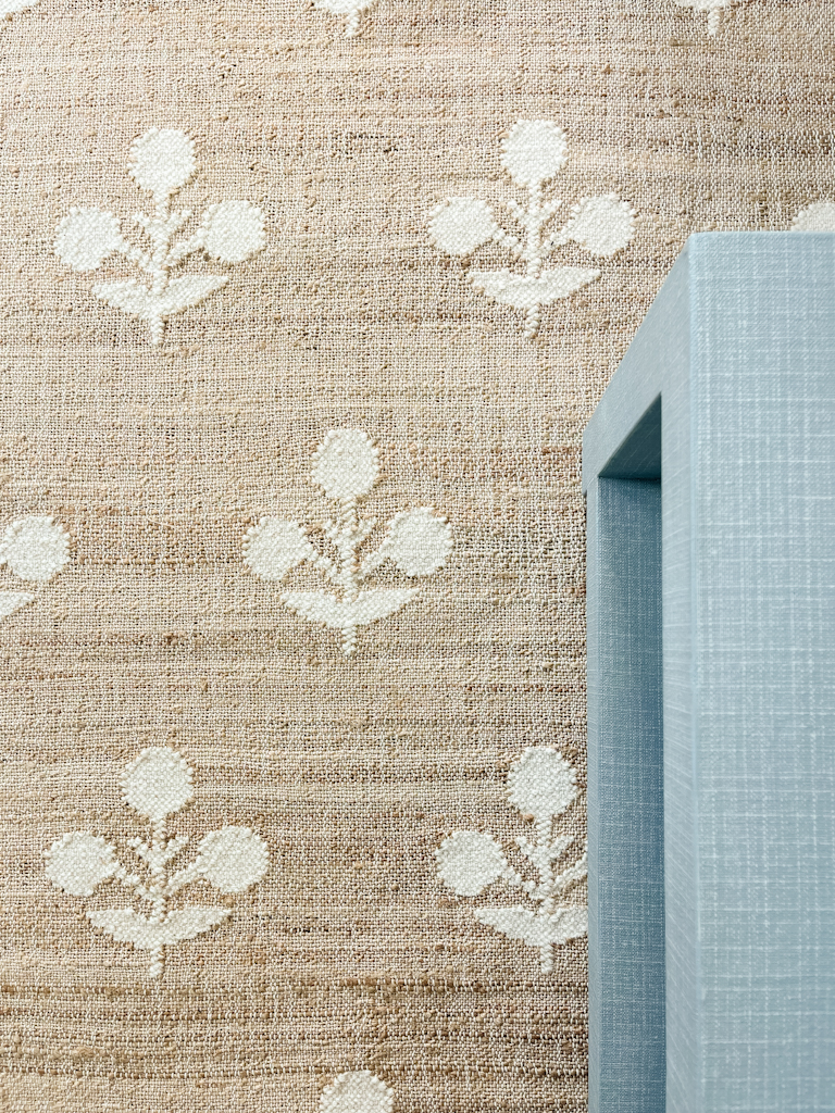 - We’re using this scalloped rattan mirror in the “cat bathroom” in the new house and can’t wait to see it with the fun patterned floor tile we’re using.
