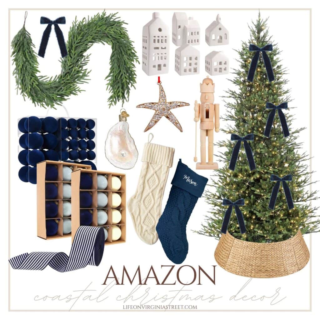 If you saw my 2025 Christmas Design Boards, you know I’m going all-in on the navy blue Christmas decor this year. Here’s a different spin on using navy blue in a more coastal way, and I love it so much!