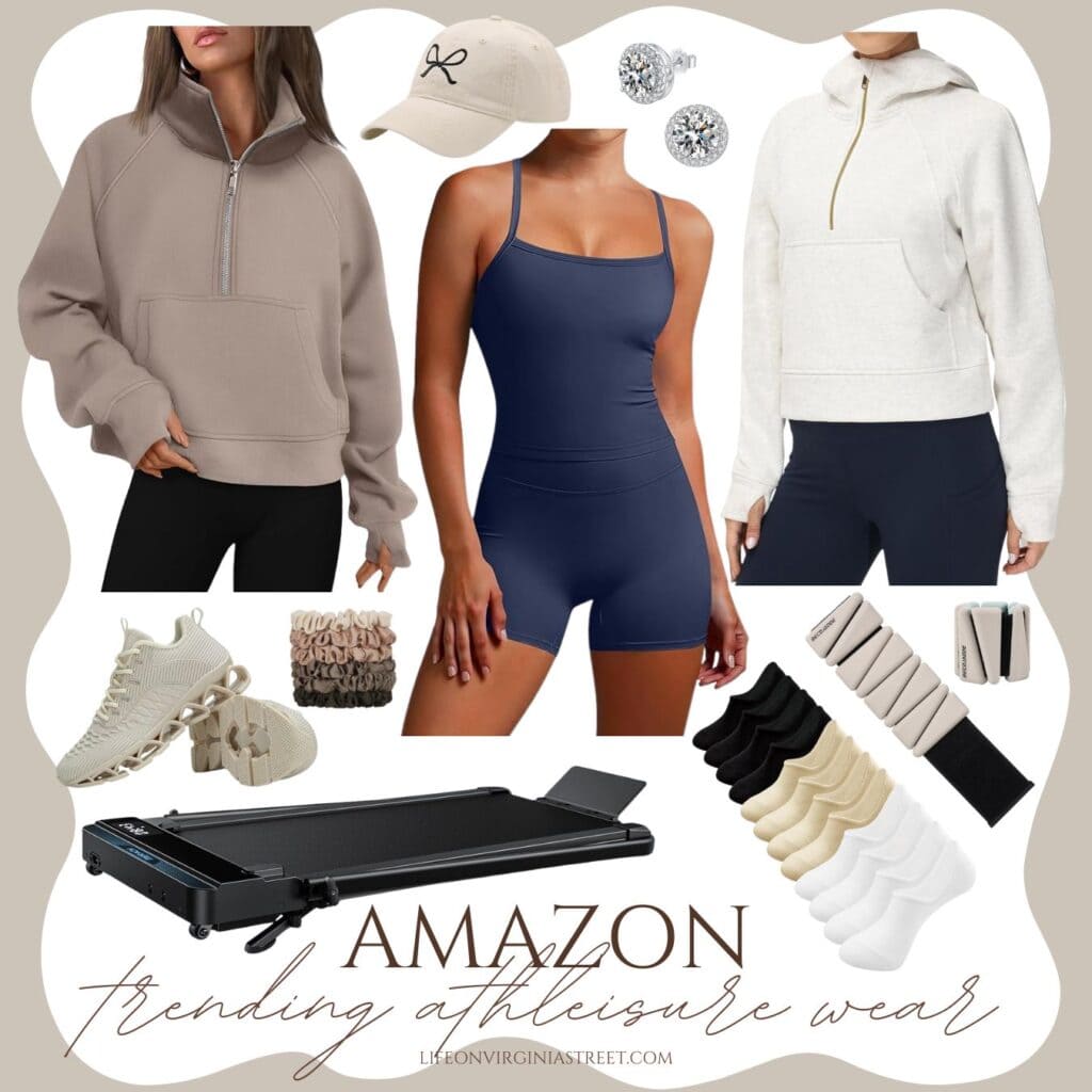 SOURCES: Half-Zip Pullover | Sneakers | Silk Hair Ties | Walking Pad | Bow Hat | Stud Earrings | Workout Set | Stand-Up Pullover | Wrist & Ankle Weights | No-Show Sock Set