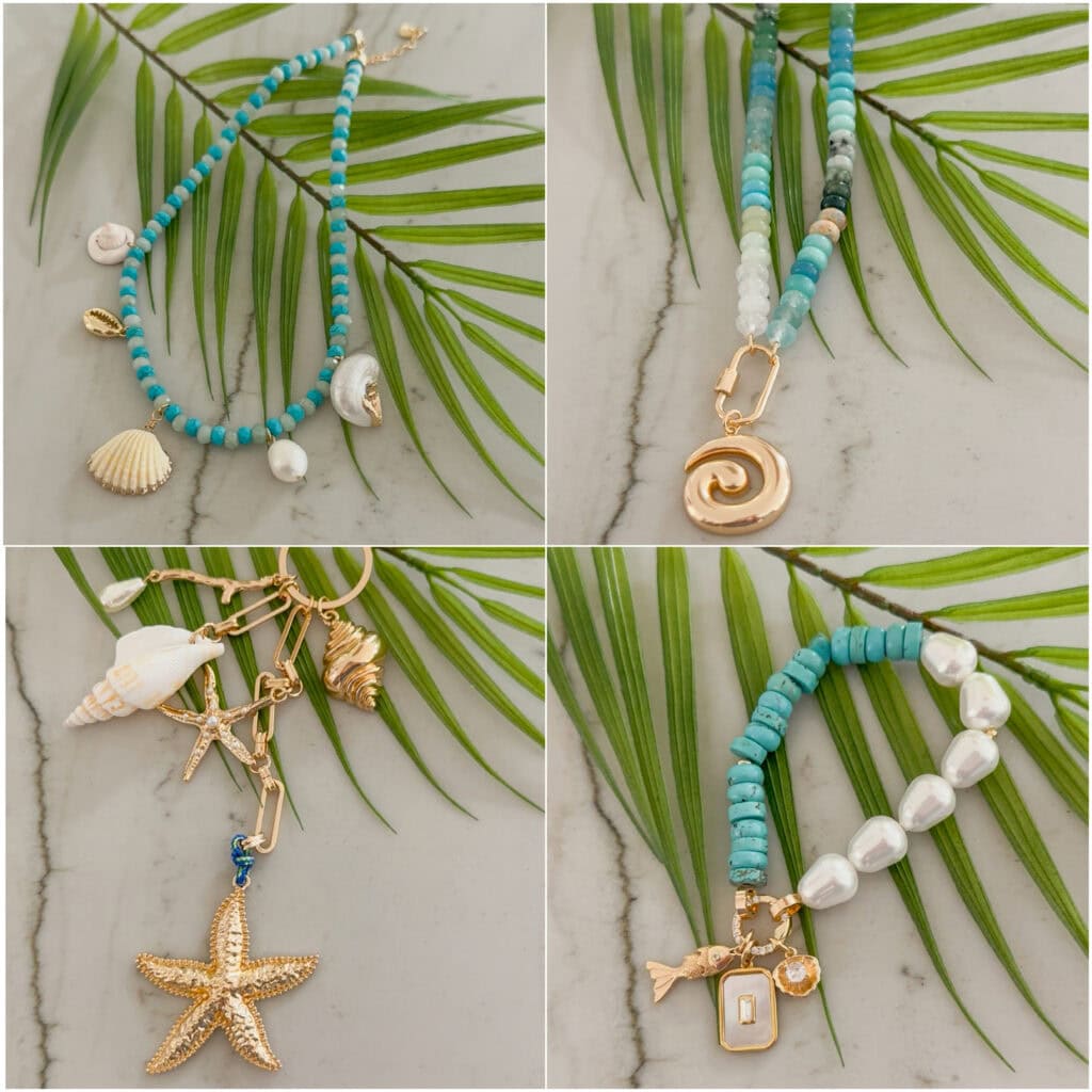 SOURCES: Beaded Seashell Necklace | Beaded Charm Necklace | Starfish Cluster Bag Charm | Beaded Charm Stretch Bracelet