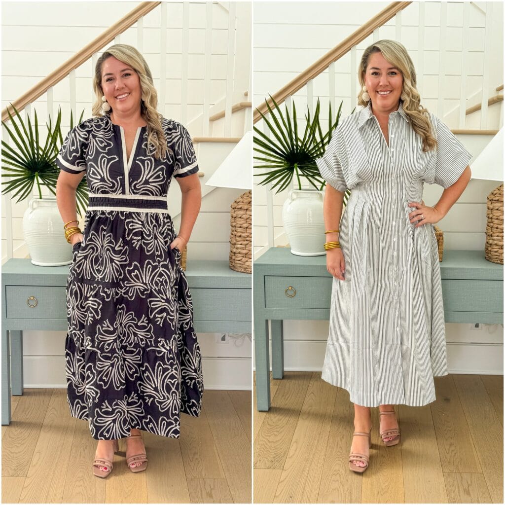 If you’re on the hunt for a universally flattering dress, these two styles work nearly every time. The first dress, the Somerset, is the one I’ve ordered over and over again over the years for special events. I am consistently a size Large (even when my weight fluctuates) so I’d say it’s true to size but size down if you’re between sizes. The one on the right, the Tobie, is one I first noticed at the LTK conference last year when so many of the influencers were wearing it. Plus size gals, petite gals, and everything in between all looked so cute in it! I ordered an XL to be safe and probably should have gone with the Large but I love it so much! They both have pockets, come in several prints and colors, and are so flattering (and very forgiving)! Definitely ones I recommend when there is a sale! I’m sharing a video of both on my Instagram stories shortly if you want to see it in action!