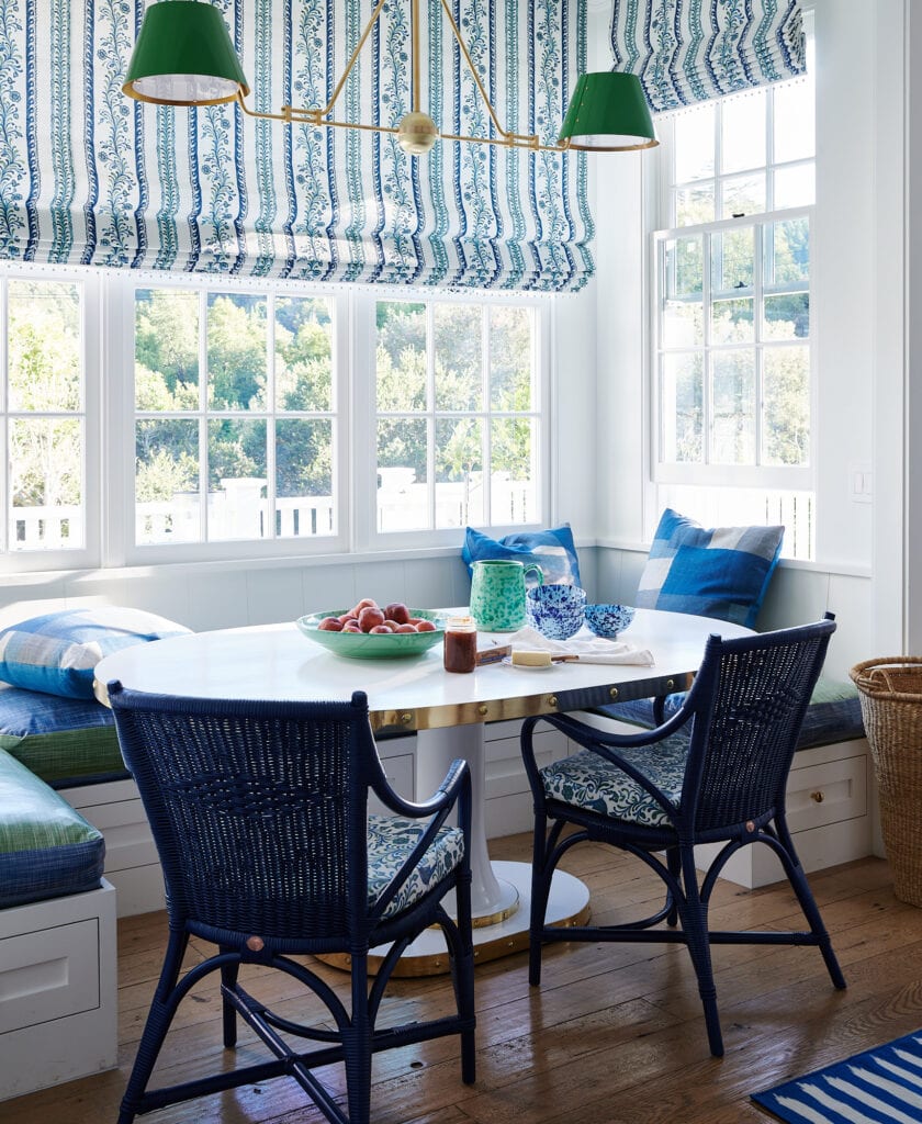 To add even more charm to a space, consider skirted banquette seating like the one shown below.