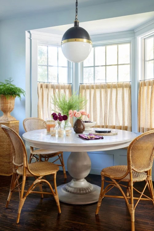 This next image gives the vibe of banquette seating but without the commitment. By utilizing the lines of a bay window, you can still get that cozy nook feel!
