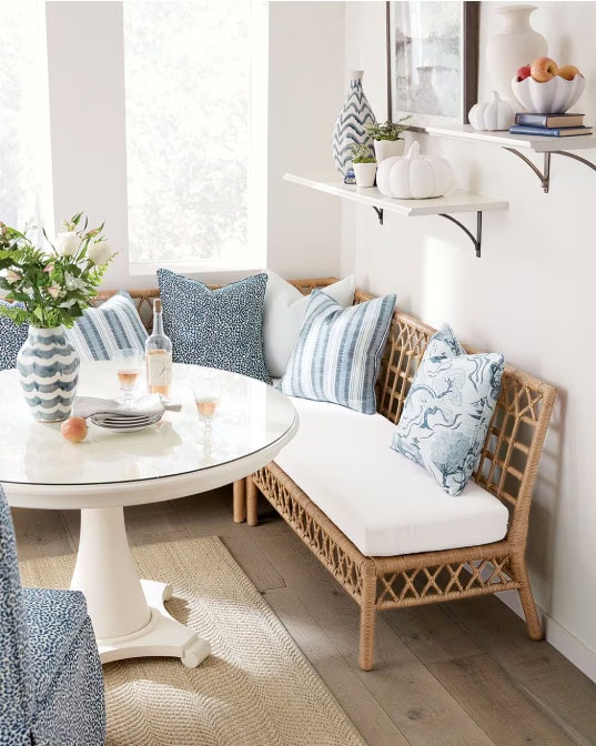Banquettes add an element of warmth and intimacy to a dining nook. The upholstered seating feels more like a lounge than a formal dining space, encouraging longer, more relaxed meals. Cushions, pillows, and fabric choices also add softness and personality to the room.