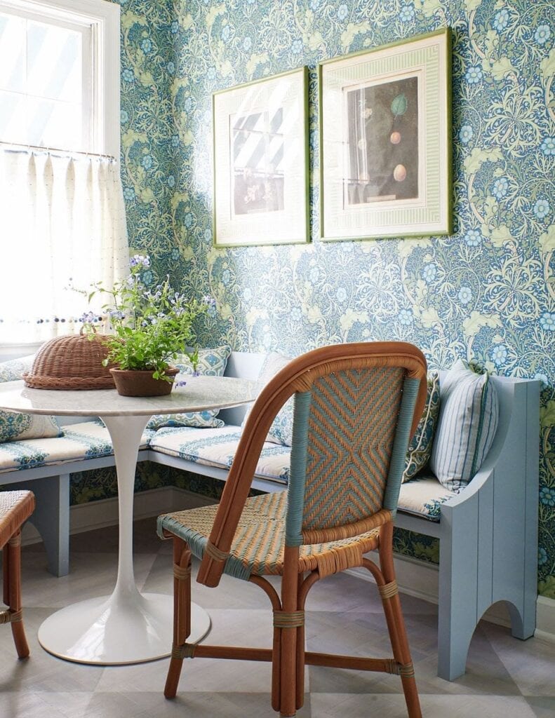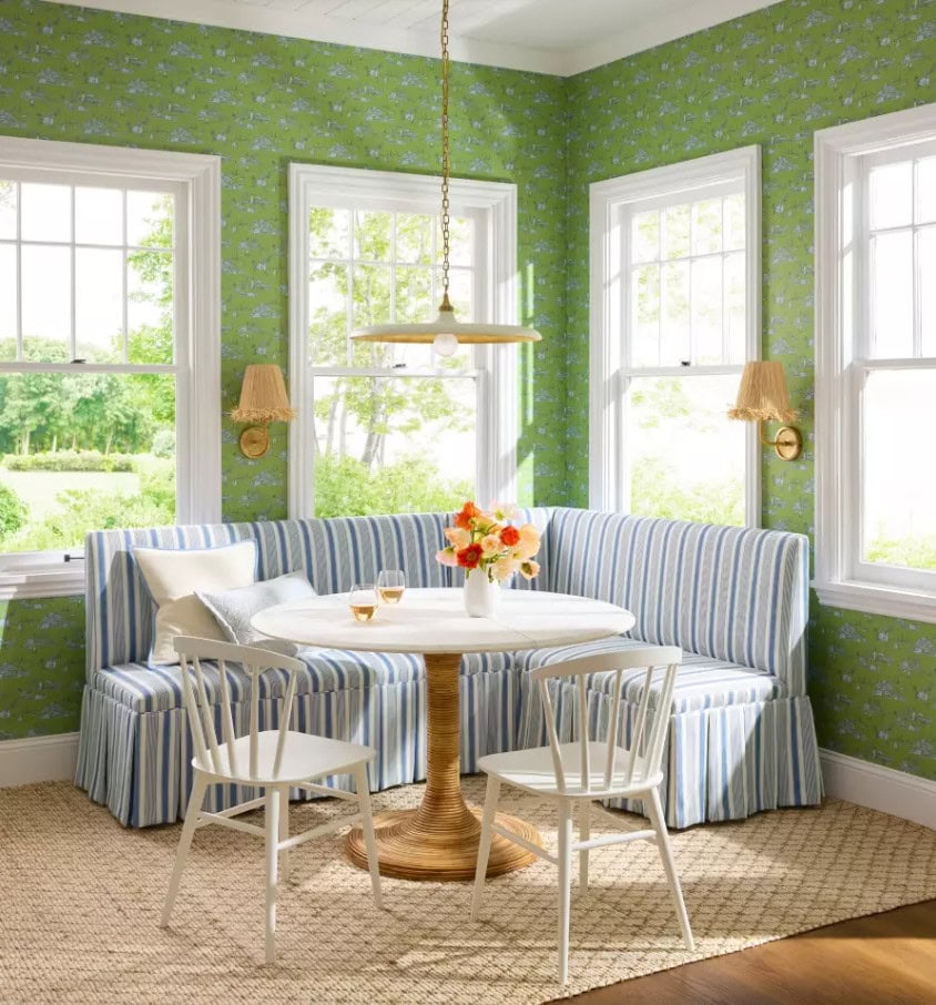 This colorful space looks so charming and cozy! The perfect spot to enjoy breakfast!