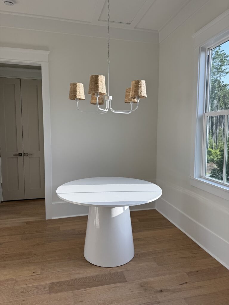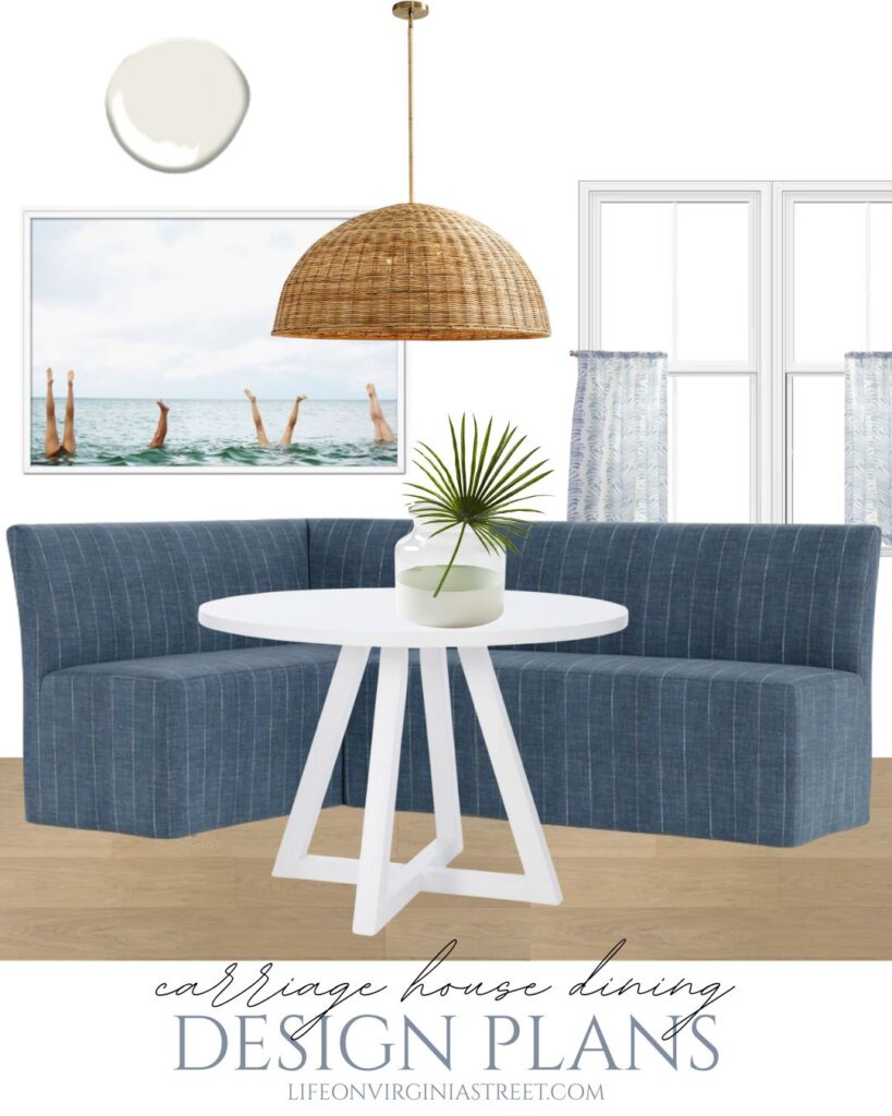 DESIGN PLAN SOURCES: Banquette | Dining Table | Woven Dome Chandelier | Handstand Art