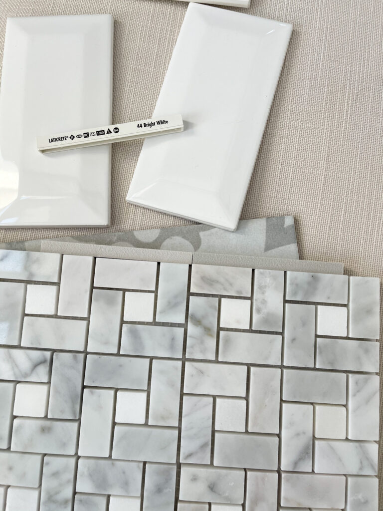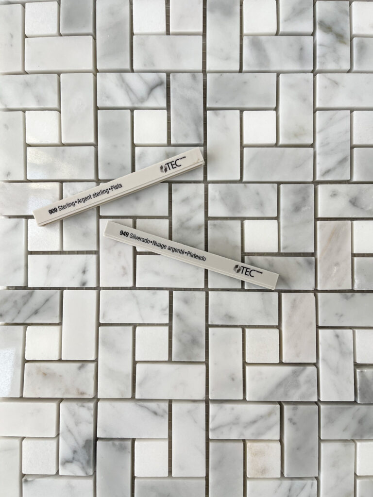 For the marble flooring, I considered two options, but ultimately chose Silverado. Since this tile could feel busy in a hurry if the contrast was too much (so many grout lines!), I wanted to pick the best mid-tone option to make the grout lines kind of fade away. I loved Sterling, but felt like it might be too warm, which is why we ultimately chose Silverado! I would recommend looking at your samples in good natural light but then also in the space where the tile and grout will ultimately reside. That will help you identify any undertones you may be trying to avoid.