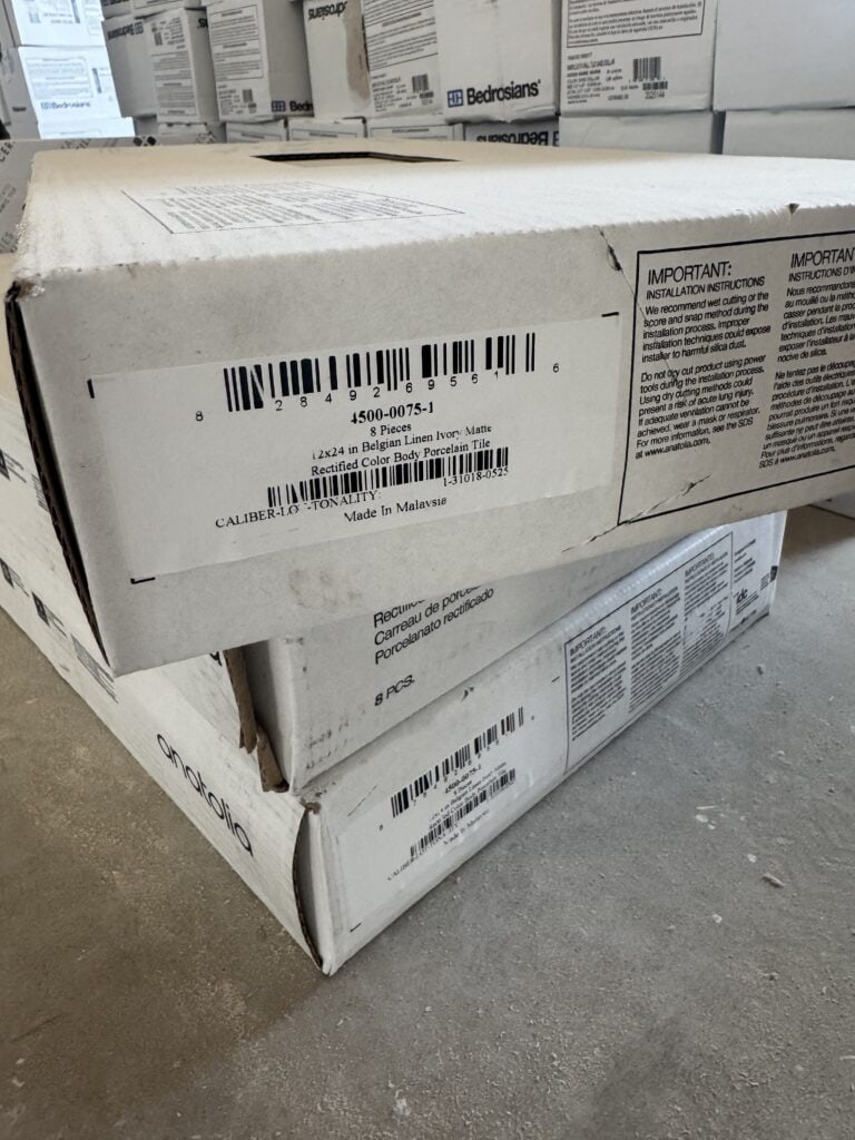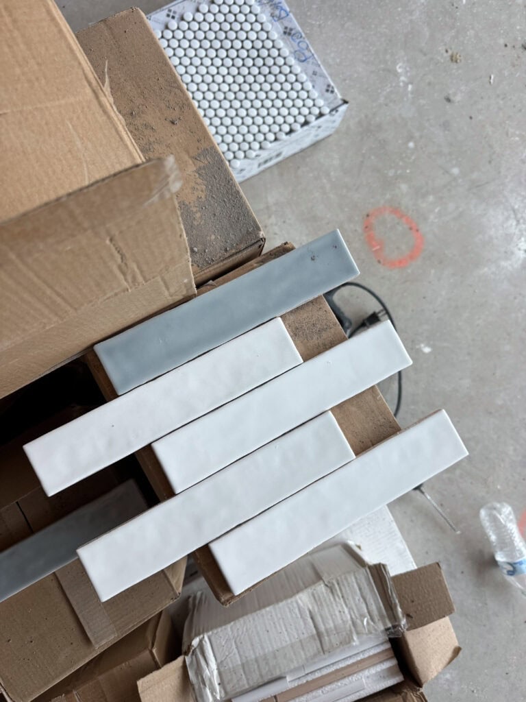 I also found the matte penny tiles we ordered, and those will go on the floor of the shower. For those that followed along early in the design process, you may remember that gorgeous clover marble penny tile I found and was obsessed with. That was the original plan for this shower floor until I found it was over $80 square foot. Zero chance that was happening, as much as I loved it! So these affordable penny tiles are a great alternative and literally nobody but me will know or have a broken heart 😉 We’ll be using a white grout for a tone-on-tone look because I also can’t deal with penny tiles with contrasting grout when one is even slightly off. That’s all my eyes notice. Ha!
