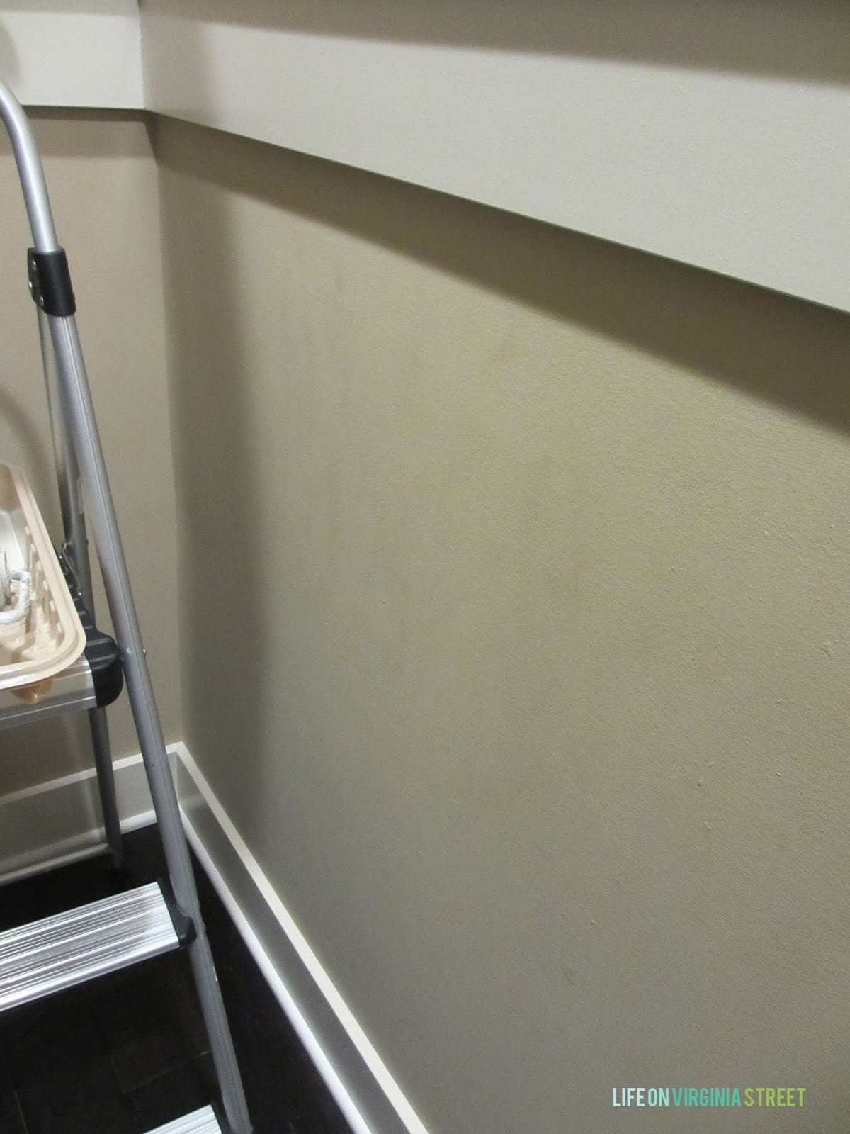 I then had to turn around and go back up the stairs. Turns out, I still had some of the Restoration Hardware Pale Silver around the upper arch. I knew it was there but I had been dreading a-framing the ladder. Yesterday was the day it got done {finally}!