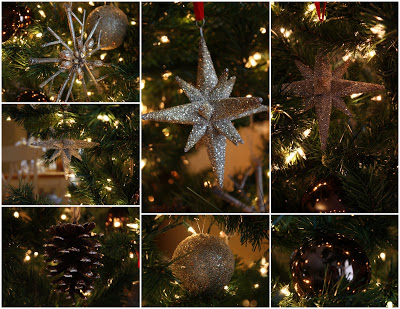 The tree. I love the tree itself – I just need to learn how to hang ornaments better. Last year my friend and I got matching 9 foot pre-lit trees at David’s {thanks to my mom for clarifying that it was not Spencer’s! – I knew it was a man’s name} in Bountiful at 75% off. I also bought several ornaments there and some more at Pottery Barn at 90% off. I went with a natural look – browns, silvers and golds. Don’t mind that the bottom branches are all pointing downwards – Henley and Hawkeye broke them after day one of setup.