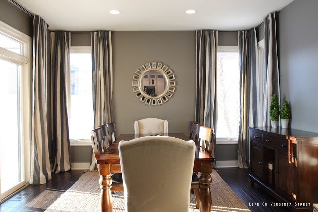 I would say your Photoshop skills are pretty awesome! Love how the stripes make the windows look taller. You have a beautiful dining room!
