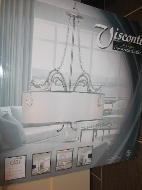 I also scored this Visconti 4 light chandelier for $39.94. Not in love with how it looks in the box, but they had one hanging in the store and it looks really nice, especially for the price. I thought it would be perfect to replace one of the “boob” lights in one of our guest bedrooms. I found the identical light on Amazon for $109.97 instead of the regular $199. This tells me this was a MAJOR score!