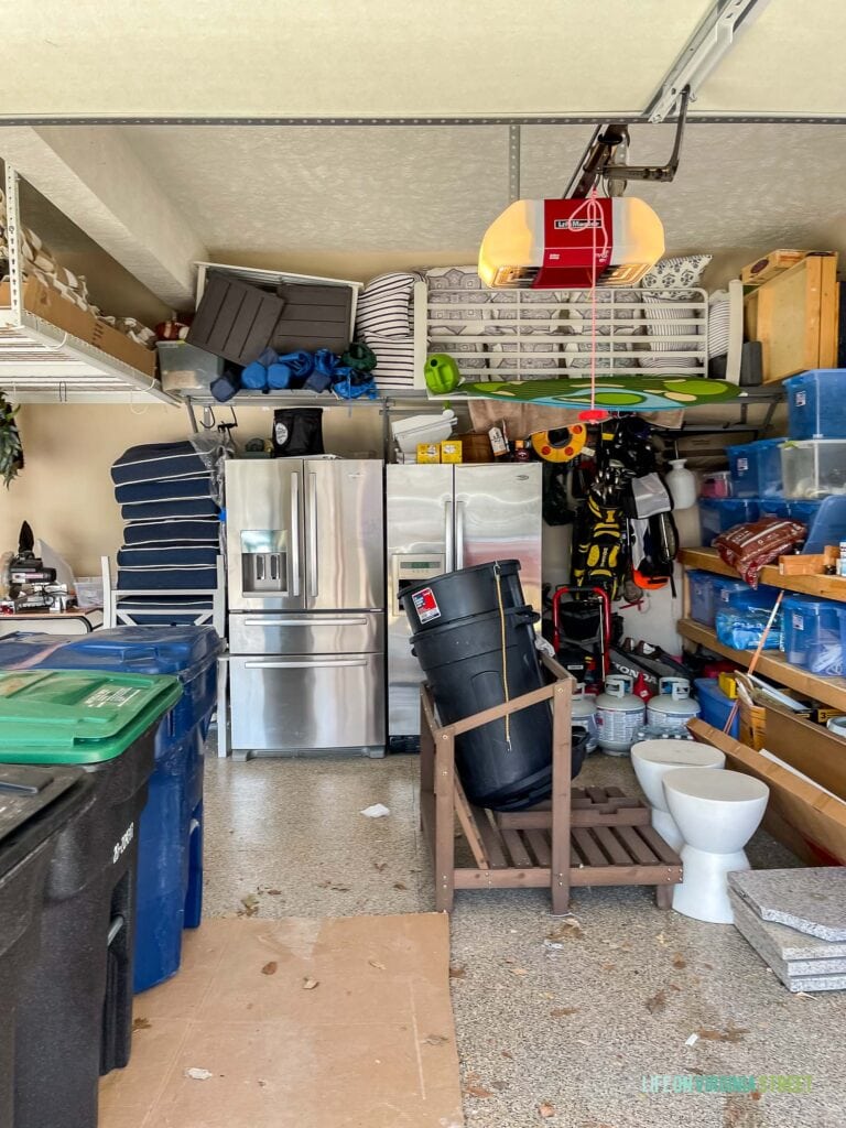 On the other side, things were a little better, but that was simply because we had to get a car almost right against the wall. Those boxes on the floor were leftover stone veneer from our back wall, but after five years of storing it here, we finally decided to donate it. Clearly, we weren’t going to use it at this point and it was making the walkway between our cars extra cramped.