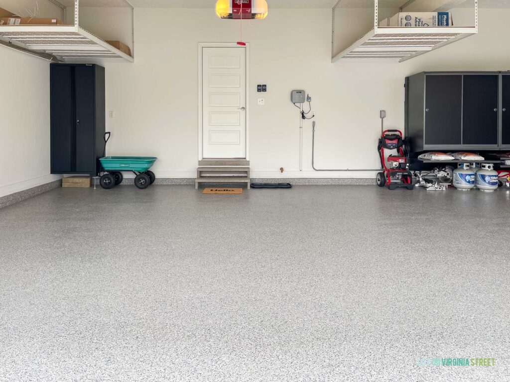 A few weeks ago, I shared part I of our garage makeover and our new polyaspartic garage floors. If you missed that post, I’d start there and then circle back to this post afterwards. Today, I’m back sharing part II of the garage makeover which focuses on all the incredible new garage organization & storage pieces we added from Hello Garage!