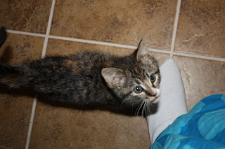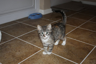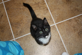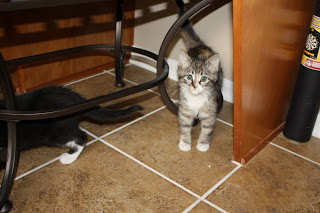 I have been begging the husband lately for a kitten, and he finally (sort of) gave in yesterday. We went to PetSmart and were going to adopt a little black kitten. When we took him to go, his little sister clung to the wires of the cage and was crying really hard. The sucker in us decided to get both of them (they were after all, 2 for 1). So, we now officially have FOUR cats (crazy huh?!?)