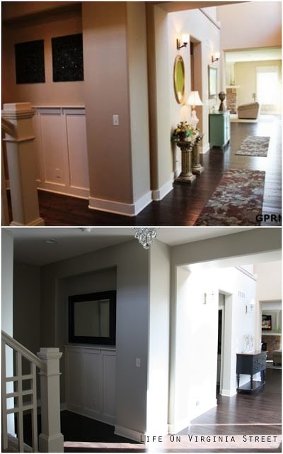I was able to finally finish painting the main level hallway/entryway this weekend. You may recall I started out using Restoration Hardware’s Pale Silver but then quickly moved on to the more neutral Behr Castle Path.