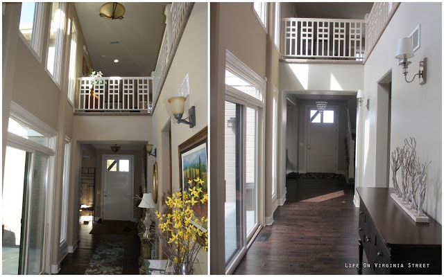 The space feels so much fresher and airier now. Next up is figuring out how to get a ladder to lean on those window walls so I can paint the two-story portion of the entry. Fun! And if you’re curious, the second-story lights still remain. That is another project I have yet to find a solution for!