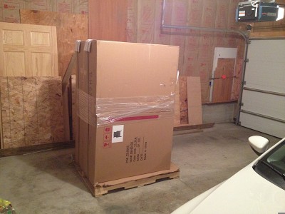 This is how the chairs arrived – they were already assembled and in individual boxes on a pallet. You’ll notice the standard sized door in the background. That’s how huge this thing was!