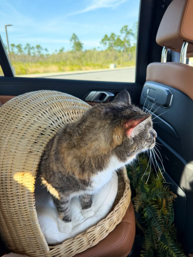 Henley in her litltle cat dome in the Publix parking lot while we waited out the buyers’ second showing.