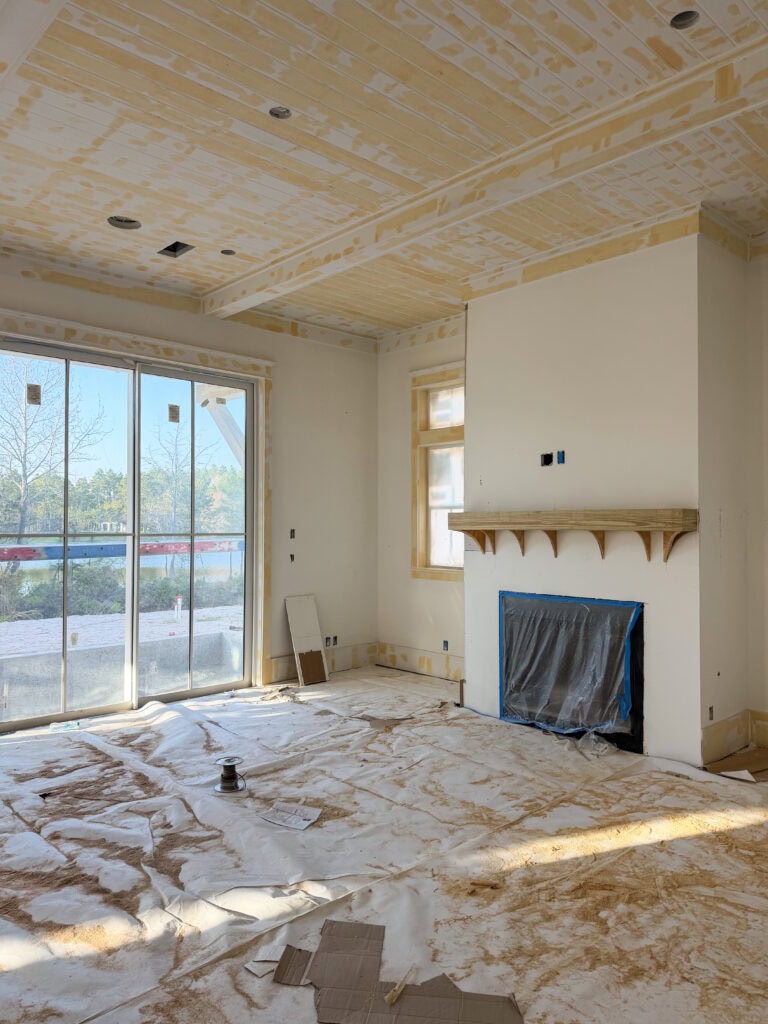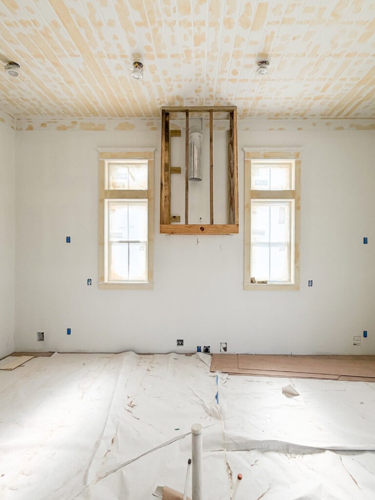 The plaster guys have started framing out our fireplace mantel and range hood. Everytime I see the painters with their wood fill and caulk I just laugh. Like HOW is there that much fill needed?! Ha! I’m just glad I don’t have to sand it all and we very much appreciate their attention to detail!