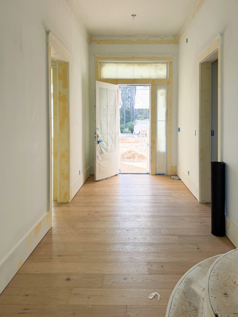 Here’s a look at the entryway floors before they covered them. We’re really happy with the color and tone! There are a lot more dark knots than we expected but I think it will all look good once everything is finished and we’re not hyper-focused on the floors. I still don’t have any idea what I’m doing for an entryway light fixture yet so that’s something I need to figure out quickly!