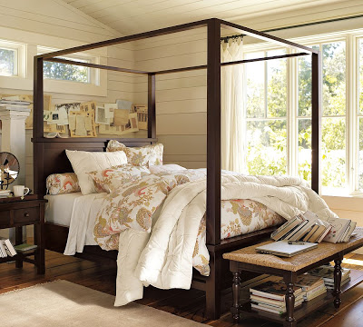 One of the coolest sites ever: Knock Off Wood. Ana is a carpenter who lives in Alaska and loves to make plans for knock offs of famous furniture. She is clearly a Pottery Barn fan {isn’t everyone?} and has made super easy plans to make the furniture yourself for a fraction of the cost. She has plans for everything from beds, to entertainment centers to children’s town centers. The best part is, most don’t even require a saw – you can have Lowe’s or Home Depot cut to the measurements she provides and then you only have to assemble it! You can also send her requests to come up with a particular plan if you cannot find it on her website. I wish we had another guest room to decorate in our house – I would TOTALLY make this Farmhouse Canopy Bed {originally from Pottery Barn} – I love how versatile it is with different styles and the fact that the various stains can really changes its character: