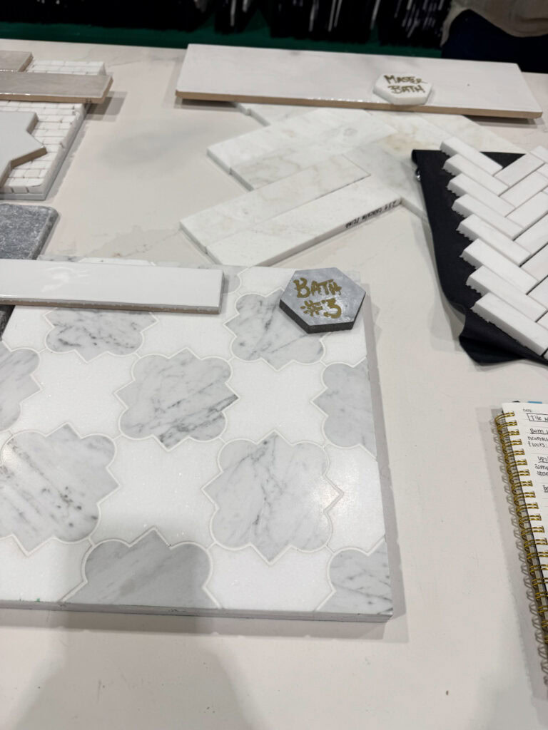 We had what we *think* is our last tile meeting on Friday. That may change once we receive the actual bid this week 😉 It took me a few months to get there, but I’m glad I started the planning process early so I could really think everything through. We had three total appointments (the first of which I went to by myself to narrow things down without Kurtis) and I’m feeling pretty confident in 99% of our selections! The below image was from our second meeting, but we’ve already changed quite a bit since!