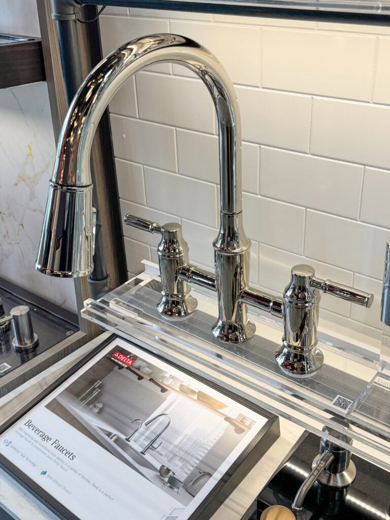 I really wanted a bridge faucet, but Kurtis hated the idea of a separate sprayer (which most have). But we found this beautiful option from Delta that has an integrated sprayer but still offers the bridge look, so it was an easy decision for us!