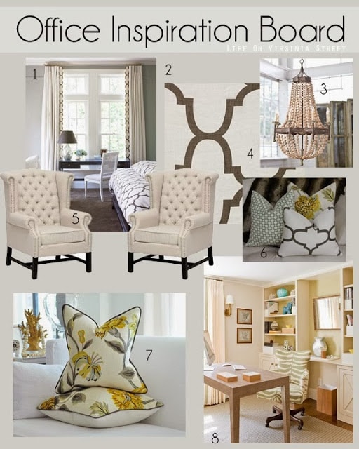 As you know, I am this.close to wrapping up my office for a final reveal. The chandelier was a big component and the drapes are nearly done. My inspiration board has almost come full circle and is nearly complete!