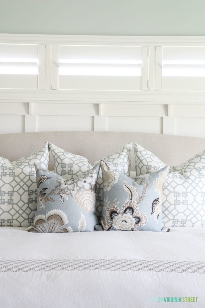 Hi Kim! I only have one full set of pillow inserts, so I try to mostly by pillow covers. That way I can just hang the seasonal covers in our guest bedroom closet when I’m not using them (and not trying to store big bulky pillows). I hope that helps!