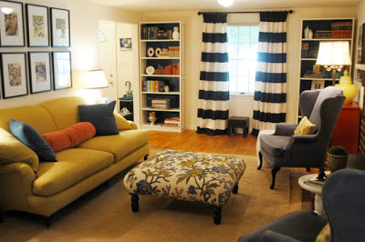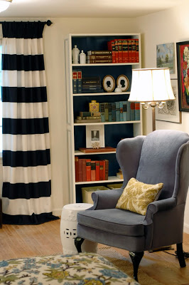 I want some cute, striped curtains like these for my freshly painted bonus room {the turquoise is gone}.