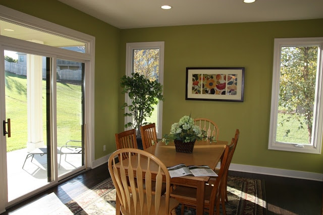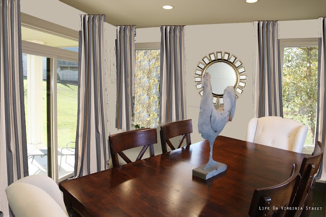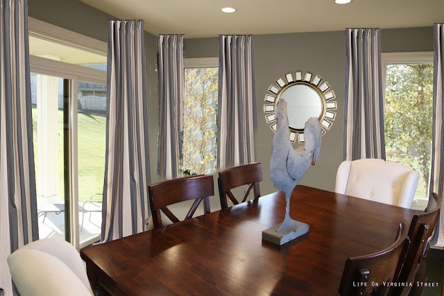 Prior to purchasing the paint, I mentioned my thoughts to the husband. Â He said he actually loves our laundry room more than any other room in the house {????} and that it was a great idea. So, I pulled the trigger. Â I think the room will still be very bright given the open access to the kitchen, the four windows and the sliding glass doors and transom. Â The curtains arrived this week, as well, and they look great. Â Excited to finish up this room over the next month!