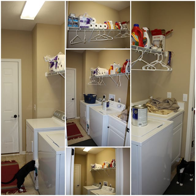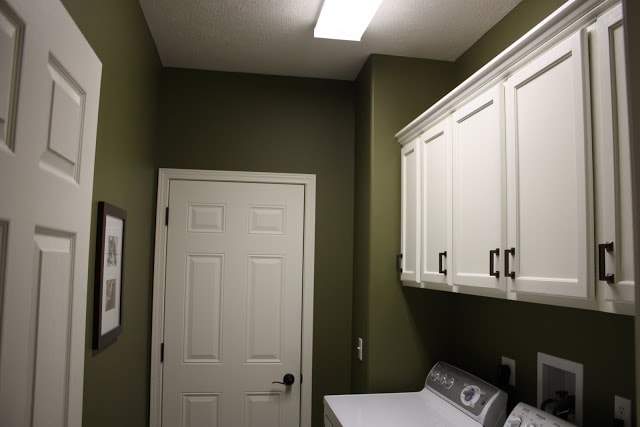 I am seriously considering adding stripes to our laundry room. Ever since the makeover we did a few years back, I have loved the room. The cabinets have been amazing and I love hiding all of our junk. However, the dark paint no longer “goes” with the lighter feel of the rest of our house.