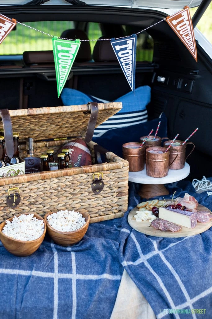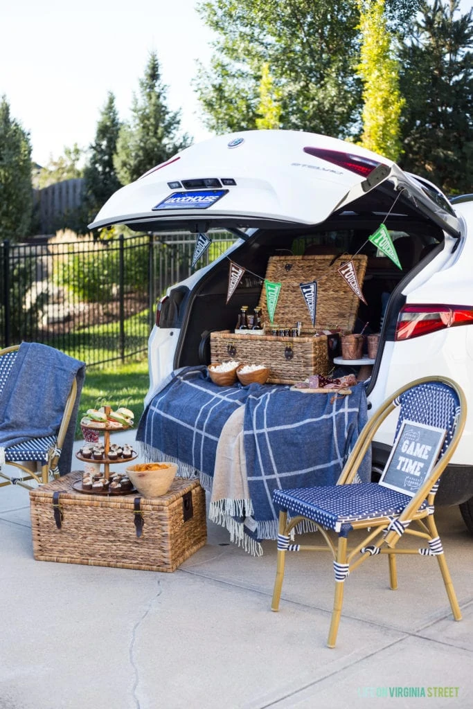 Once you arrive at your tailgating site, access to much else is usually limited. So, I like to treat my pre-tailgating prep as I would a picnic. Make a list of everything you’ll need and make sure it will all fit in your vehicle. I’ll get into more details shortly, but you want to be prepared and also comfortable upon your arrival. Pack plenty of blankets, pillows, chairs, food and drinks to ensure you’ll enjoy your tailgating day to the fullest! Much like a picnic, also assume that everything you pack must come home with you (including trash). But, that doesn’t mean your tailgating event can’t be stylish!