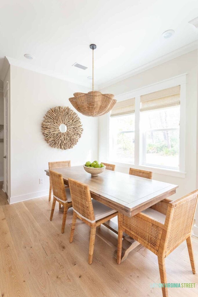 Could you please share the source of the rattan/wicker dining table pendant? I don’t see it in the post. Thanks!