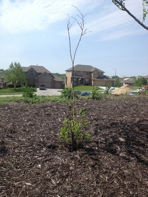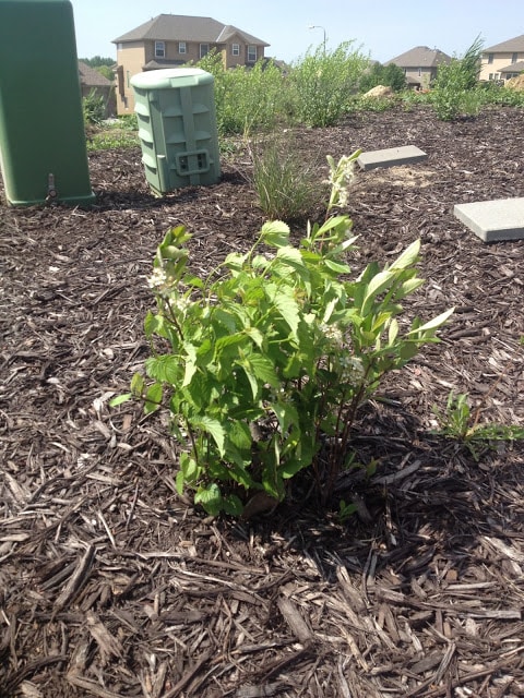 Over Memorial Day weekend, I took care of trimming the bushes on our upper hill. We aren’t entirely sure what they are {possibly dogwoods} and the prior homeowners had plans to remove all of them because they didn’t like the stickly shapes either. However, I decided to prune them back quite a bit and now they will work for the time being to see if ultimately they will work in the long run. There were 15-20 of these on our hill some standing nearly six feet tall, with the bulk of the plant only 1-2 feet off the ground. Now it is much more appealing to look back up on the hill.