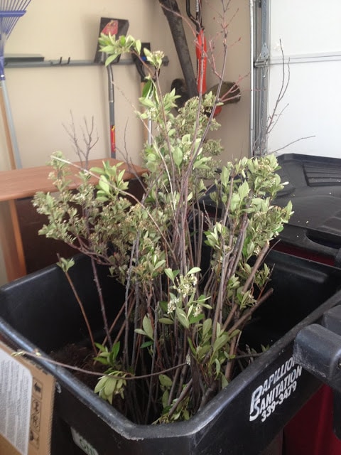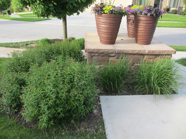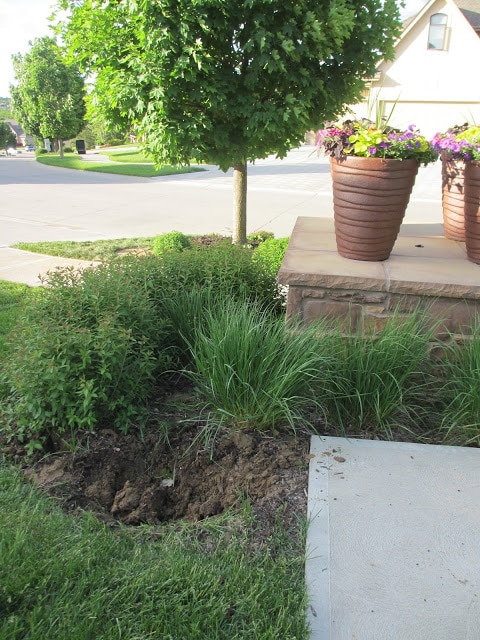 One recommendation was to tear out the spirea in our front yard around the stone pedestal my planters sit on. Our front yard needs more color and some plants, like these, are planted much to close to the grass line and are starting to look overgrown. I got started that night and quite after one. These bad boys are huge and NOT easy to get out!
