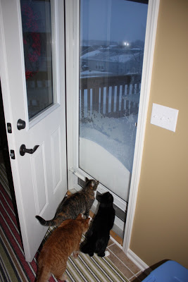Here is our back screen door. The kids do not like it when they can’t see out! Notice how high the snow is on the neighbors’ houses is! Our pine tree looks like it has been buried alive.