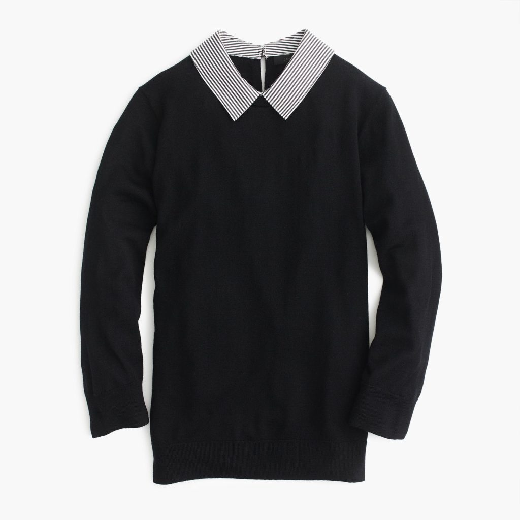 5 – I’m a sucker for a faux-collared shirt, and that’s because I hate the lumpy look of layers. I’m loving this striped collar sweater that looks perfect and polished! Side note: it’s actually navy blue even though it looks black in the photos.