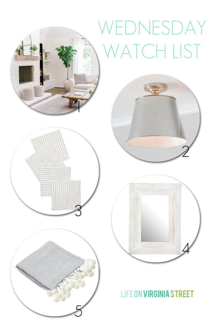 5 – I’ve really been wanting a Moroccan style throw for some time, and this one is the only one I’ve found that’s somewhat reasonable in price with a similar look. I love the look of this one, this one and this one, but I really can’t justify spending $150-350 on a blanket! This one could also be another viable option and I love the price and look of this one (although it has a bit more of a coastal vibe)