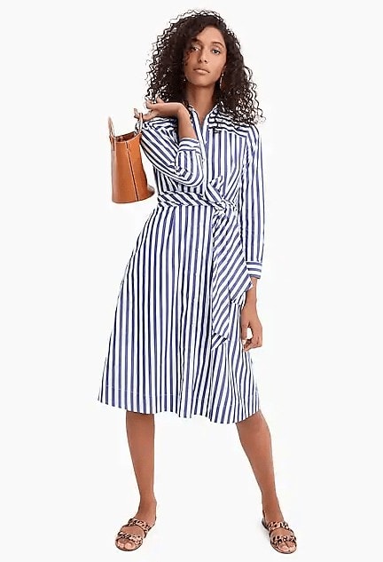 2 – I’m loving this tie-waist shirtdress for late summer and fall! It comes in three stripe and two solid options. I’ll let you guess which one I would pick 😉 I love this silhouette though for those of us with curvier bods and big hips. It always seems to be a flattering style with the tied waist! Reviews say it runs small (I don’t think there is any give in the fabric) so order up.