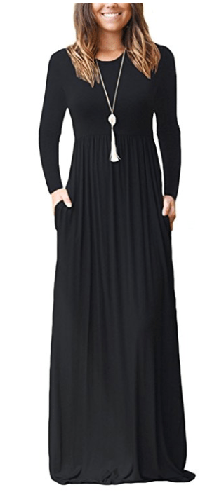 5 – I ended up buying this affordable long-sleeve maxi dress for the wedding I’m going to on Friday night! This is the same style as the short-sleeved striped dress I shared in the summer that you all loved so much! This one is floor length on me at 5’8″ (I feel like short sleeve version was about 3″ longer) and it fits great! I love that it has pockets and I can just as easily wear it to church or running errands by changing up the shoes and accessories! It comes in tons of colors and sleeve options as well!