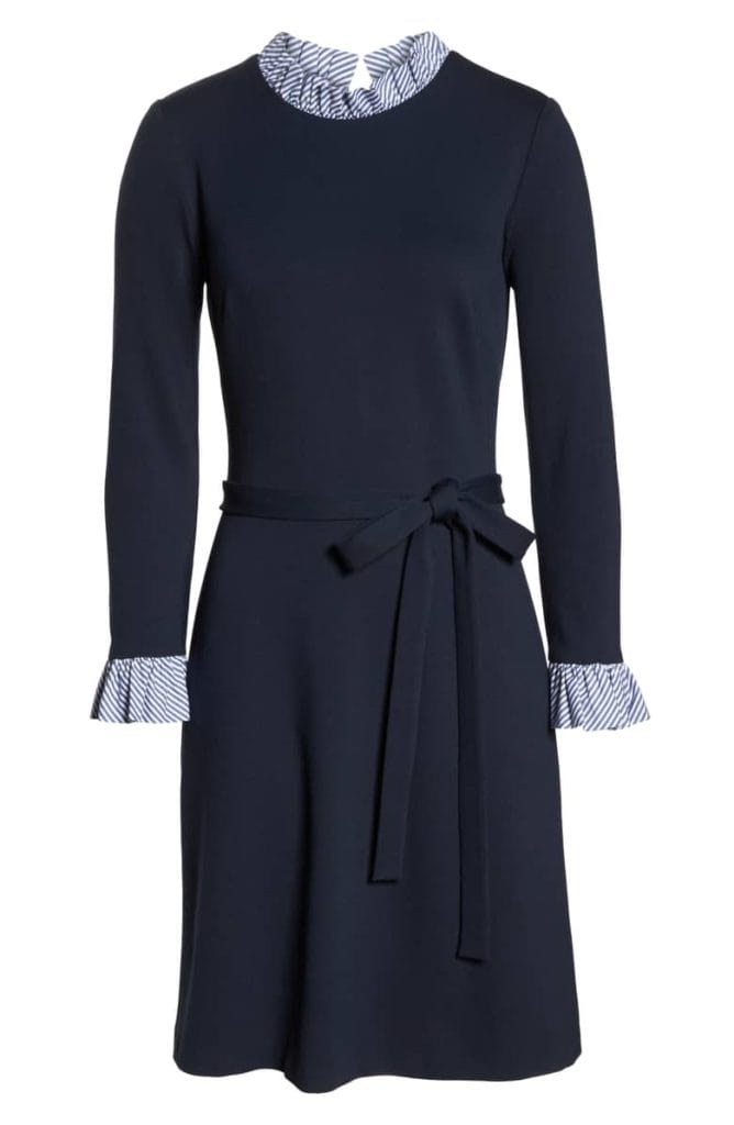 4 – How darling is this striped poplin detail tie waist dress?!? It reminds me a lot of my favorite sweatshirt, but I love that the ruffle details are even more exaggerated in the dress! Reviews are excellent, but most recommend sizing up one for the best fit!
