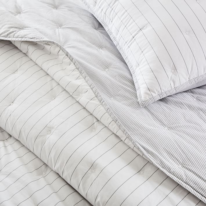 5 – I’ve been seeing a recent bedding trend that I love lately! Pinstriped bedding is everywhere and I’m sure you can guess I’m totally onboard with that! The subtle stripes allow you to easily mix in other patterns too if you’d like. I especially love this pinstripe quilt set because you could still use it with an existing duvet (and it’s reversible!). I found additional cute styles here, here and here.