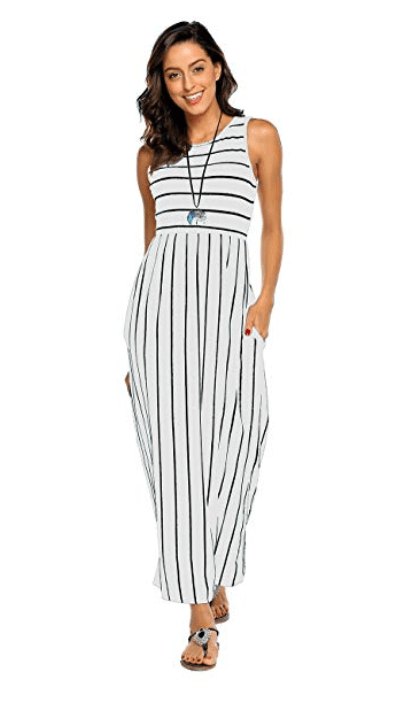 2 – My favorite striped maxi dress now comes in a sleeveless version! The price is hard to beat and they are so comfy and easy to wear! I’ve worn them dressed up and down. They typically come pretty long, but my mom, who is several inches shorter than me, has cut them with scissors at the bottom. They don’t unravel (and look finished) because of the type of jersey fabric! I’m ordering the white option for summer! They fit true to size and I typically order a size large.