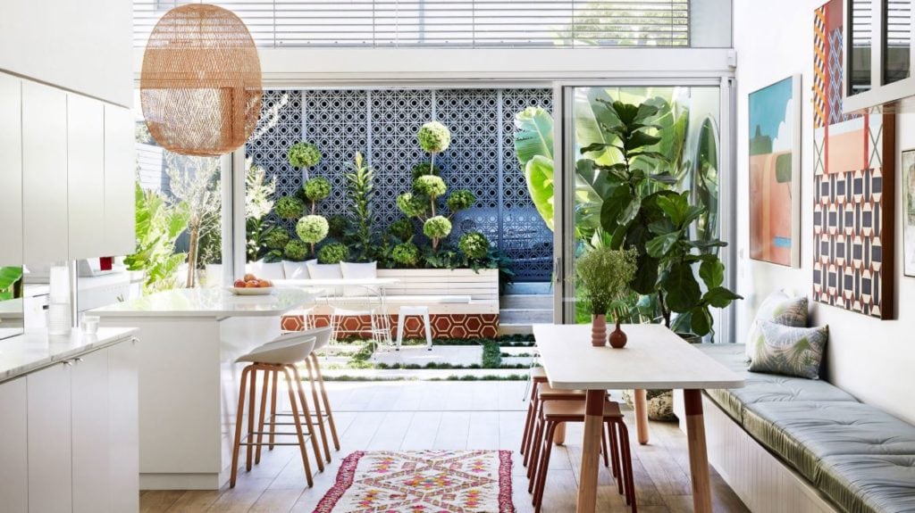 1 – This colorful, art-filled family home in Australia is way more colorful and bold than I’d typically be drawn too. But, it is done so well and is proof that white walls can make even the most colorful and graphic homes feel clean and crisp. And that outdoor space is to die for! You can take the full home tour here, and you can see my favorite interior white paint colors here.