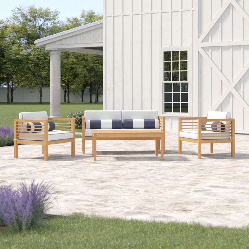 5 – Seriously considering this cute outdoor conversation set (also available here and here). The price is pretty incredible for a 4-piece set, the cushions look darling (that contrast piping!), and most of the reviews are really good (especially considering the price)! We need two more chairs out by the pool and I’m still scheming about our courtyard. I may have to give them a try since I love the overall look so much and figure out a fire pit situation later! It looks like the brand also has another very similar option here and here in black & white without all the side rails if you don’t love that look. And this option has the x-frame sides!