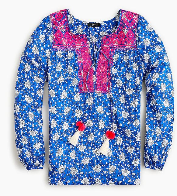 3 – I bought both colors of this top about a month ago, and I’m kind of shocked at how much I’ve worn them so far! I was thinking I’d mostly only use them in the fall (and really only planned on keeping one color) but with the cooler temps we had the end of July and early August, I actually wore them quite a bit more than I expected. The cotton is lightweight and breathable, and the pattern and poms couldn’t be cuter. Plus, the embroidery is beautiful! Highly recommended, especially now that they are an additional 50% off with code EPIC. I ordered a Large in both sizes and it’s definitely roomy (it’s wider on bottom than it appears), but I usually just do a half-tuck in front and love the fit. The fabric doesn’t have any give but I probably could have also made a medium work since it has a slight v-neck cut. I also got this top and love it, but I went with a large and definitely needed to size down one. I can wear the large, but the straps keep wanting to slide off. The colors and print are so pretty in person though! They’re also offering 40% off select full-priced styles with the same code – so there’s a lot of great options for late summer/early fall!